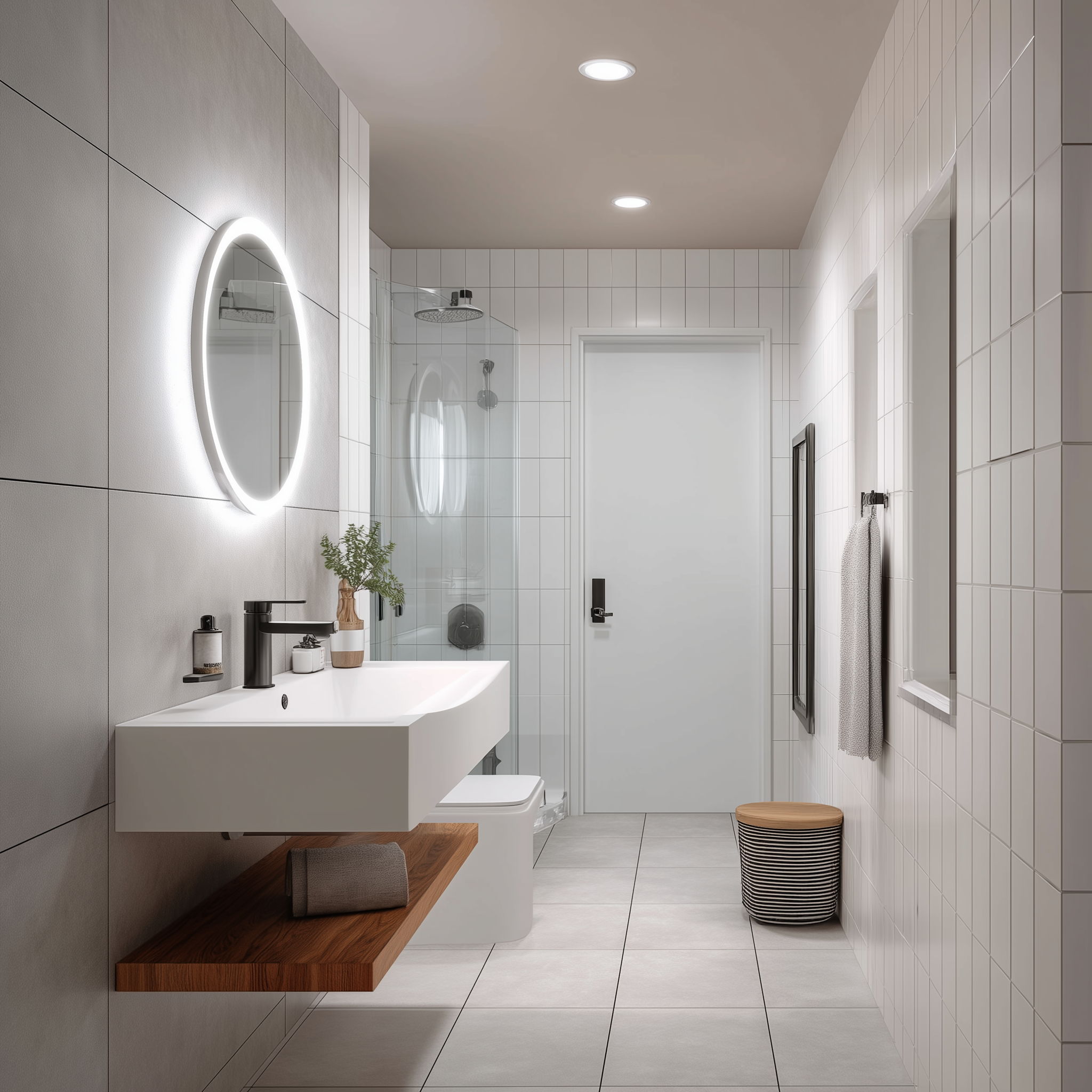 We installed extractor fans, heated towel rails, LED mirrors, and all waterproof-rated wiring to regulation standards.